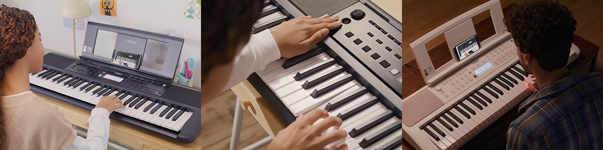 PSR-Eเป็นคีย์บอร์ดแบบพกพารุ่นมาตรฐาน 61 คีย์ที่เหมาะอย่างยิ่งสำหรับนักดนตรีที่อยู่ในระดับเริ่มต้นฝึกฝน หรือแม้แต่ใช้ในการแสดงสดของนักดนตรี คีย์บอร์ดรุ่นนี้เต็มเปี่ยมไปด้วยฟังก์ชันอเนกประสงค์ แป้นกดคีย์บอร์ดรองรับทัชชิ่ง รวมถึงฟังก์ชันอำนวยความสะดวกอื่นๆ อีกมากมายซึ่งช่วยให้ผู้เล่นที่แม้จะเพิ่งหัดเล่นสามารถเพลิดเพลินไปกับการเล่นได้