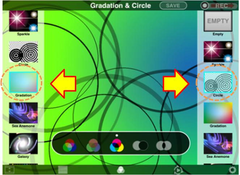 Visual Performer supports AirPlay and allows you to display your visual performances other screens connected via Apple TV – ideal for stage performances. The animation created while you were performing can be saved together with the audio recorded using the iPad, iPod touch, or iPhone’s internal microphone, so you can share your performance via e-mail or on video-sharing web sites. The potential for diversity in your performances depends on your creativity.