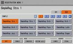 เลือกและเรียกใช้ Registration แยกตามแนวดนตรีเพื่อการเล่นที่สมจริงทันใจ รุ่น Custom มีเมนูต่างๆ ให้เลือกถึง 566 แบบ ในขณะที่รุ่นมาตรฐานมีเมนูให้เลือก 506 แบบ Simple Registrations” สามารถใช้สำหรับอิมโพรไวส์ หรือใช้เป็นองค์ประกอบพื้นฐานเมื่อสร้าง Regsitration ในแบบของตนเอง”