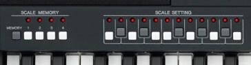 The scale setting buttons allow you to create custom scale tuning by altering each of the 12 scale steps. You can change the scale settings at any time, even when you are playing.