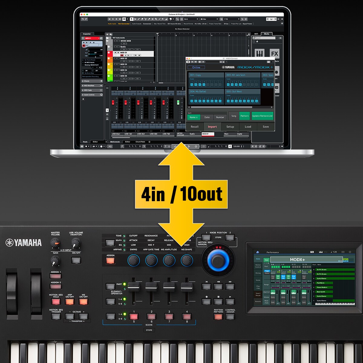 MODX+ มีอินเตอร์เฟสระบบเสียงแบบ USB หลายช่องสัญญาณคุณภาพระดับมืออาชีพ โดยมีช่องสัญญาณเข้า 4 ช่อง/ออก 10 ช่อง เพื่อตอบโจทย์การผลิตงานเพลงด้วยคอมพิวเตอร์ที่ทันสมัย MODX+ เป็นอุปกรณ์ชิ้นสำคัญที่ยอดเยี่ยมสำหรับสตูดิโอบันทึกเสียงระดับมืออาชีพหรืออุปกรณ์คอมพิวเตอร์สำหรับไลฟ์สด ด้วยการเชื่อมต่อเข้ากับอินพุต A/D ทั้งสอง