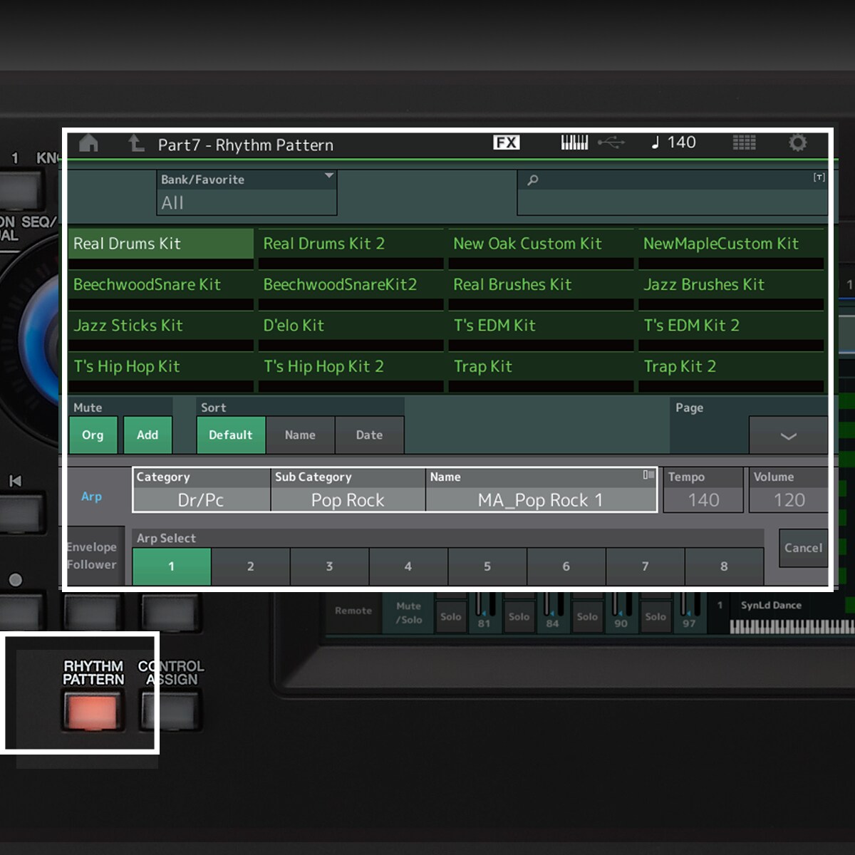 มือกลองมาสายอีกแล้วใช่หรือไม่? MODX+ Rhythm Pattern เป็นเหมือนดรัมแมชชีนในตัวที่สามารถเข้าถึงแพทเทิร์นกว่าหนึ่งพันรายการได้อย่างง่ายด้วยปุ่มบนแผงด้านหน้า เพิ่มจังหวะอย่างรวดเร็วเมื่อแต่งเพลง ฝึกซ้อม หรือระหว่างรอมือกลองมาเซ็ทอุปกรณ์ หรือทำการแสดง