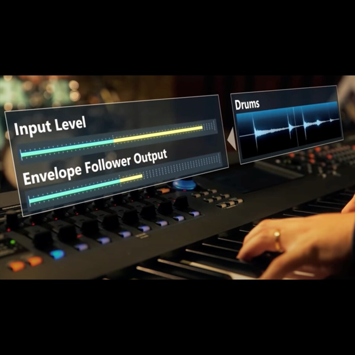 Envelope Follower จะแปลงเสียงเป็นแหล่งควบคุมเพื่อควบคุมพารามิเตอร์ของซินเธอร์ไซส์เซอร์ใดๆ แบบเห็นภาพ ตัวอย่างเช่น ดรัมลูปอาจขับเคลื่อนเอฟเฟ็กต์พารามิเตอร์สำหรับจังหวะที่ยอดเยี่ยมหรือการบันทึกเสียงร้องที่สามารถควบคุมพารามิเตอร์หลายตัวสำหรับซินเธอร์ไซส์เซอร์ “ที่พูดได้” เสียงยังสามารถเป็นแหล่ง “ไล้ฟ์สด” ผ่านทางอินพุต A/D
