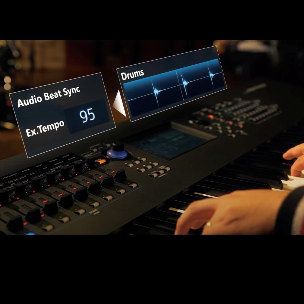 Audio Beat Sync (ABS) จะตรวจจับจังหวะของอุปกรณ์ภายนอก เช่น ชุดกลองไฟฟ้า ดรัมแมชชีน หรือเครื่องเล่นเสียงที่เชื่อมต่อกับอินพุต A/D และซิงโครไนซ์ MODX+ Arpeggiator, Motion Sequencer หรือเพลงกับจังหวะของอินพุตภายนอก