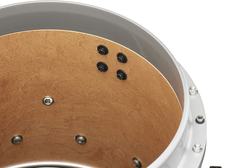 An aluminum ring on the inner surface of the shell supports high-tension tuning of the snare head.