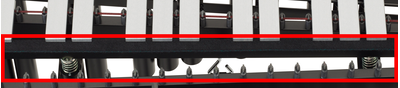 Compared to conventional damper mechanisms that use a pivoted damper arm, the damper mechanism in the new models moves perpendicularly to the natural and accidental tone bars and contacts them evenly for improved damping. The new mechanism is also safer, because parts that could catch fingers have been eliminated.