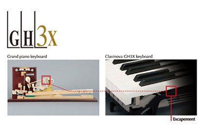 - GH3X (Graded Hammer 3X) keyboard with synthetic ebony and ivory keytops