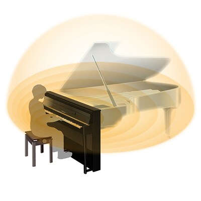 ระบบเสียงที่ออกแบบและพัฒนาขึ้นมาใหม่ใช้โครงสร้างการกระจายเสียงที่จะถ่ายทอดความลึกและความเต็มอิ่มของเสียงเปียโนแกรนด์ ลำโพงที่อยู่บริเวณด้านบนของตัวเครื่องใช้โครงสร้างฮอร์นที่ออกแบบใหม่เพื่อถ่ายทอดเสียงแหลมสูงและกระจายเสียงออกไปด้านหน้าและด้านหลังของเปียโน ลำโพงที่อยู่บริเวณเท้าจะกระจายเสียงไปทางด้านบน ซึ่งจะถ่ายทอดเสียงที่ก้องกังวานทั่วทั้งตัวเปียโน นอกจากการปรับปรุงพัฒนาโครงสร้างดังกล่าว คุณภาพเสียงและการปรับบาลานซ์อย่างละเอียดตามการตอบสนองของนักเปียโน ทำให้ได้เสียงแบบสามมิติที่กังวานไพเราะและใกล้เคียงกับอะคูสติกเปียโนแกรนด์มากยิ่งขึ้น