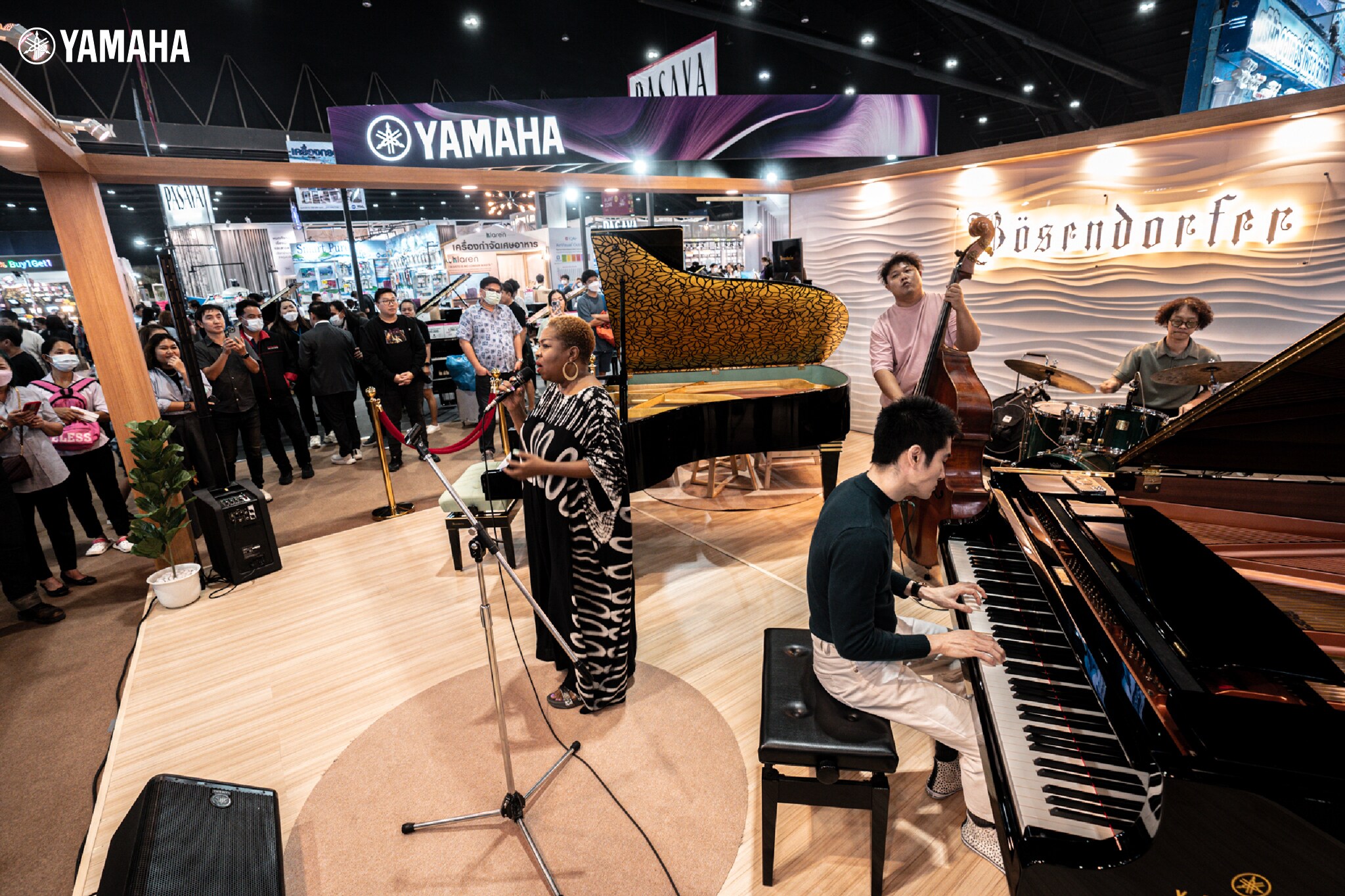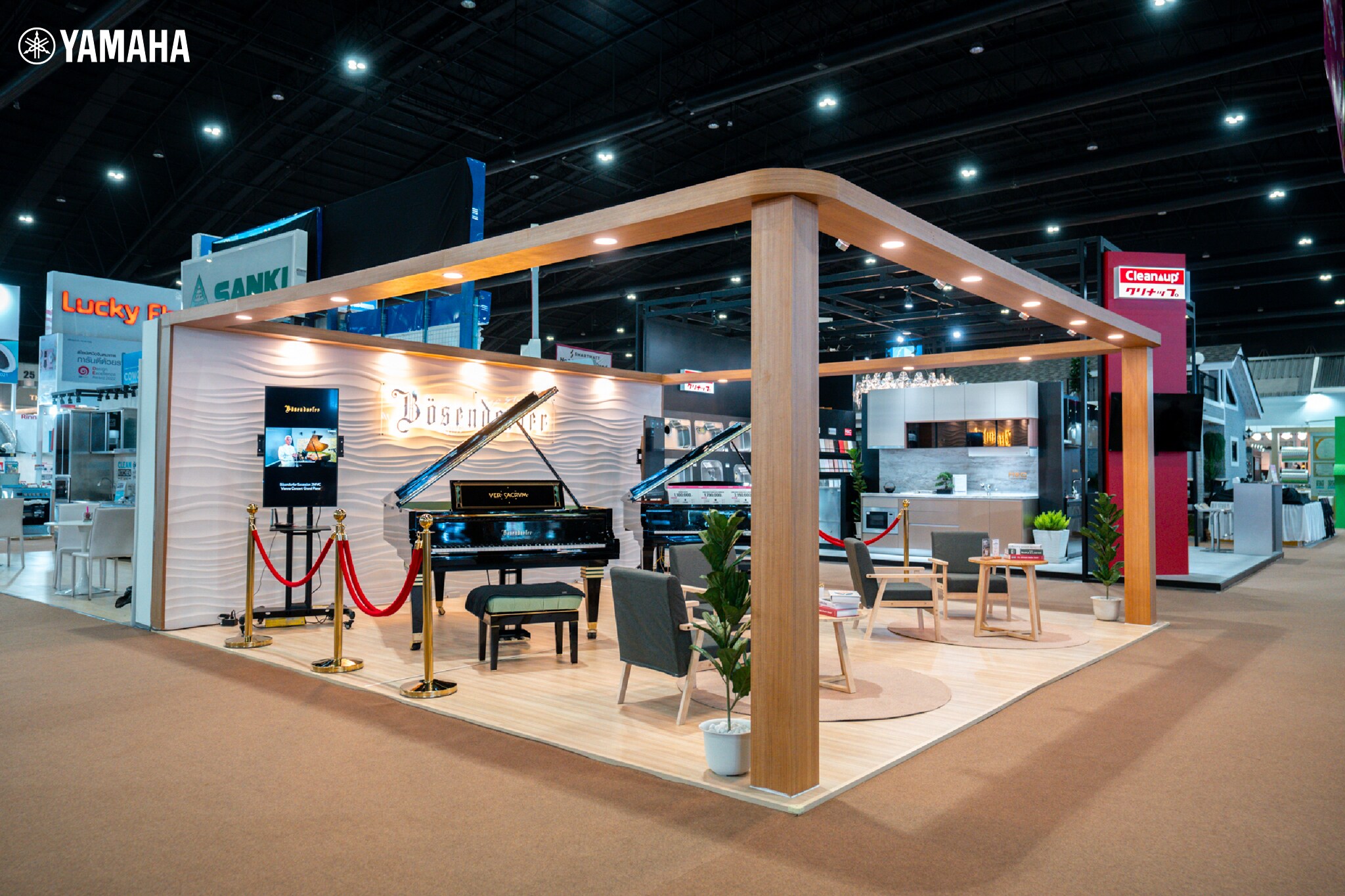 โดยบูธจัดแสดงสินค้าครั้งนี้ ใช้พื้นที่กว่า 14 บูธสินค้า เพื่อจัดแสดงเปียโนคุณภาพมากถึง 20 รุ่น ให้ผู้สนใจได้เลือกทดลองกันอย่างครบครัน ไม่ว่าจะเป็นสินค้าแกรนด์เปียโน อัพไรท์เปียโน ดิจิตอลเปียโน ภายใต้แบรนด์ Yamaha รวมถึงจัดแสดงเปียโนภายใต้แบรนด์ Bösendorfer รุ่น Limited Edition Secession Concert Grand ซึ่งเป็นเปียโนที่ผลิตด้วยเทคนิคงานฝีมือชั้นสูงจากประเทศออสเตรีย ตกแต่งด้วยลวดลายจากทองคำ 23 กะรัต ที่มีเพียงหลังเดียวในประเทศไทย จาก 21 หลังทั่วโลก รวมถึงภายในงานยังมีผู้เชี่ยวชาญด้านการดูแลเปียโนและบริการหลังการขายสำหรับเปียโนจากศูนย์บริการเปียโนยามาฮ่า คอยให้คำแนะนำตลอดทั้งวัน เพื่อตอกย้ำความพร้อมในการบริการลูกค้าตลอดการใช้งาน