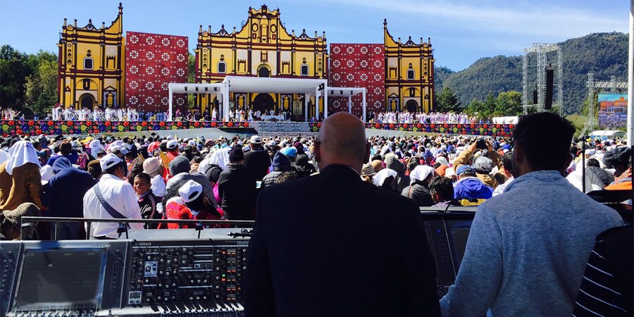 His Holiness Pope Francis, Sovereign of the Vatican City, visited Mexico from February 12 to 17, 2016, where nearly ten million people attended masses and events in a number of cities. Yamaha Mexico provided sound equipment and technical support at three of the most important locations.
