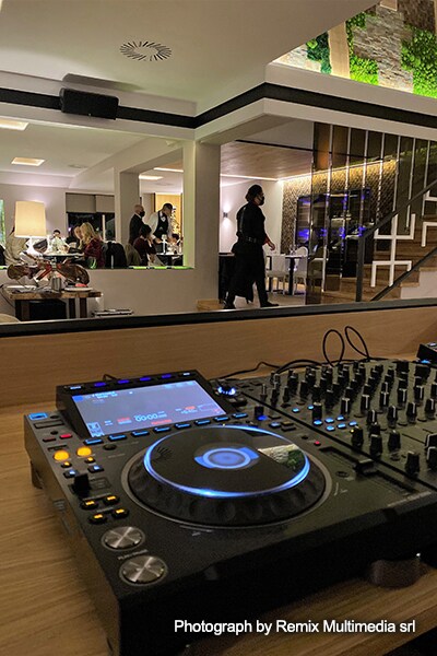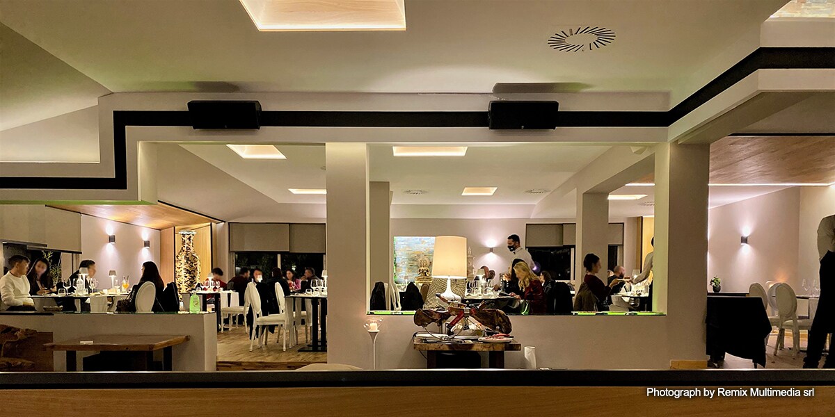 “เมื่อ Magni อธิบายไอเดียเกี่ยวกับระบบเครื่องเสียงที่อยู่ในหัวเขาออกมาให้พวกเราเข้าใจ ทุกอย่างก็ชัดเจนโดยไม่มีข้อสงสัย” Michele กล่าว “เราจะใช้ชุดลำโพงแบบฟูลเรนจ์ 2 ทางรุ่น IF2208 ของ Yamaha จำนวน 4 ตัวและซับวูฟเฟอร์รุ่น DXS15XLF จำนวน 2 ตัวเพื่อถ่ายทอดเสียงที่ชัดเจนและทรงพลังสำหรับพื้นที่ฟลอร์เต้นรำ ในบริเวณพื้นที่ร้านอาหารจะใช้ลำโพงติดผนังรุ่น VXS5 จำนวน 4 ตัวเพื่อช่วยเสริมระบบเครื่องเสียงหลักให้สมบูรณ์ยิ่งขึ้น ต้องขอบคุณระบบเสียงที่มีคุณภาพนี้”