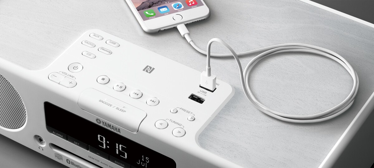 Yamaha's new IntelliAlarm wakes you gently with the audio source of your choosing, first filtering out uncomfortable high frequencies, then gradually restoring the full audio spectrum before beeping to ensure you are awake.