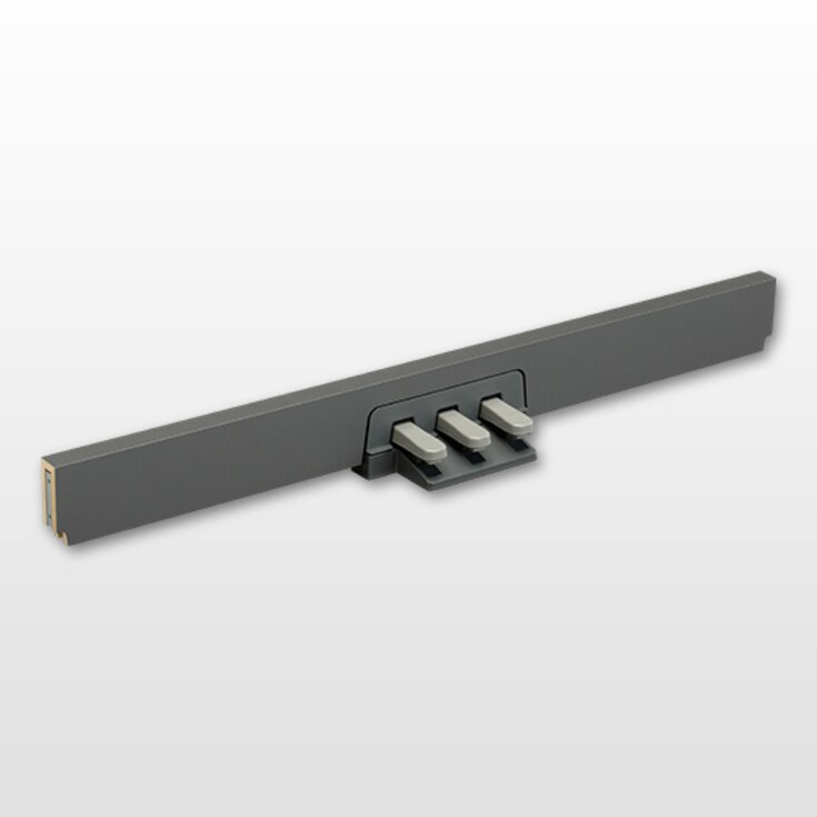 Three piano-style pedals for the same kind of functional sustain, sostenuto and soft control found on grand pianos with half-damper effect