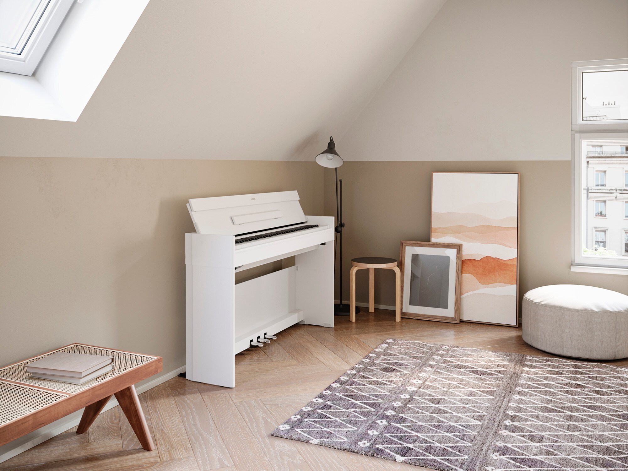 เปียโนดิจิตอล ARIUS ขนาดมาตรฐาน รุ่น 88 คีย์ มาพร้อมคีย์บอร์ดแบบมีน้ำหนักคีย์ สัมผัสประสบการณ์การถ่ายทอดเสียงที่สมบูรณ์ด้วยคีย์บอร์ด GHS ที่มีเสียงเปียโนแกรนด์คอนเสิร์ต CFX จาก Yamaha เป็นเสียงเครื่องดนตรีในตัว มีฟังก์ชันช่วยถนอมหูแบบใหม่ และรองรับการใช้งานแอป Smart Pianist ของ Yamaha