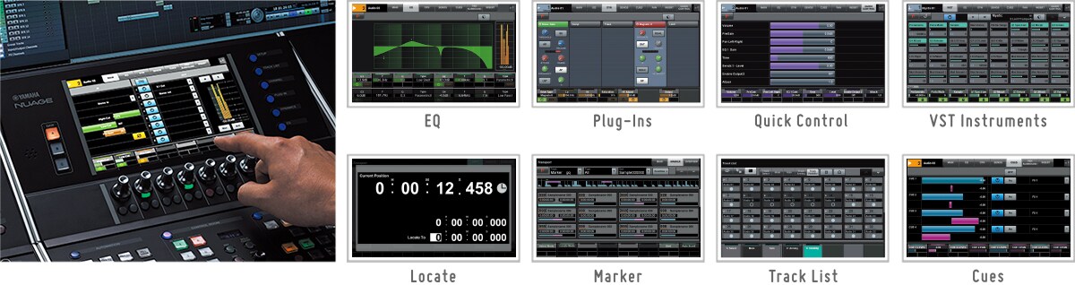 The Nuendo/Cubase Control Room feature replicates large-console monitoring facilities in software. Control Room is faithfully recreated on the Nuage Master panel, providing a full-function monitoring and communication environment without having to add extra equipment.